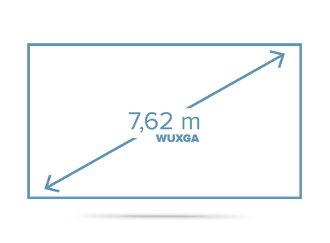 Projekce terčů i detekce zásahů s vysokým rozlišením, vysoká svítivost, úhlopříčka až 7,62 m.