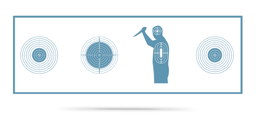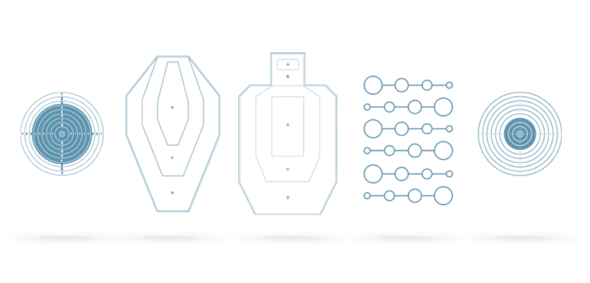 V základní nabídce se systémem dodáváme širokou škálu nejrůznějších terčů pro různá využití. Od policejních, přes myslivecké až po volnočasové terče. Systém umožňuje vytvářet i vlastní sady terčů.